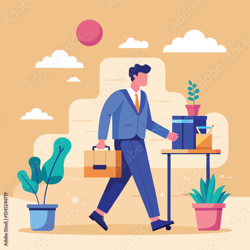 Businessman Walking to Work, Vector Illustration