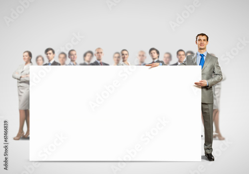 Businessman with blank banner
