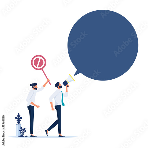 Businessman with megaphone speak to manager and refuse metaphor of freedom speak