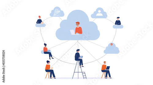businessman, working, online, cloud, technology, network, social, concept, remote, datum, storage, external, business, process, flat, vector, illustration, connected, cyberspace, digital, communication, collaboration, virtual, office, tech, corporate, professional, workspace, connectivity, interaction, mobile, computer, laptop, efficiency, management, networking, teamwork