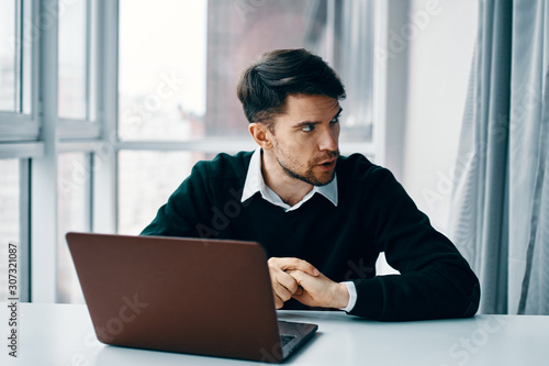 laptop, computer, man, young, business, happy, people, businessman, person, casual attire, office, male, work, lifestyle, technology, photogenic, adult, professional, notebook, smile, cyberspace, men at work, home, desk, portrait, white, sitting, modern, executive, online, 1, table, manager, corporate, confident, goggles, phone, workplace, beard, caucasian, communication, african, attractive, tied-up, expertise, finance, bearded, indoor, job, talk