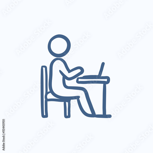 vector, business, graphic, illustration, design, drawing, hand-drawn, draw, icon, isolated, outline, background, businessman, person, adult, human, pictogram, vignetting, white, black, web, male, mobile, concept, guy, manager, 1, communication, connection, network, modern, computer, datum, desktop, device, digital, electronic mail, information, cyberspace, letter, media, mobility, sitting, tech, type, wireless, input, to sit, connectivity