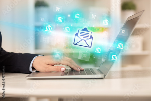 Businessman working on laptop with new business