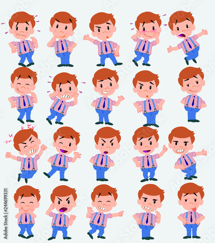 BusinessmCartoon character businessman in casual style. Set with different postures, attitudes and poses, doing different activities in isolated vector illustrations.an in casual style waving, happy.
