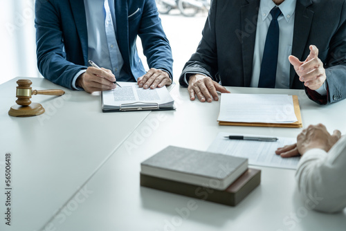 Businesspeople and Male lawyer consult and conference having team meeting with the client at a law firm in office, Law and Legal services concept