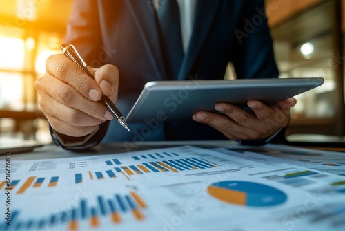 Businessperson Analyzing Invoice On Digital Tablet, Generative AI