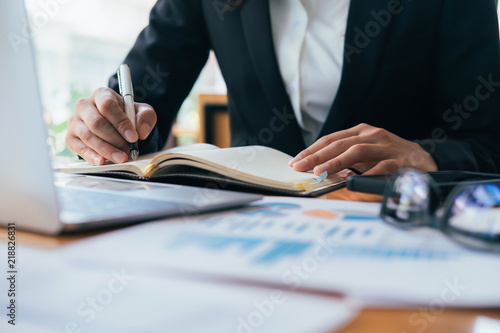Businesswoman analyse investment marketing data.