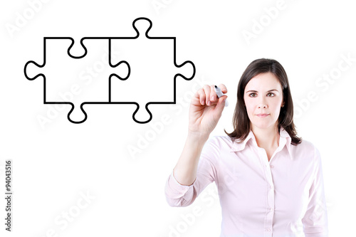 Businesswoman drawing a Blank Puzzle on the screen.
