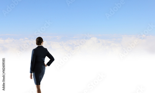 businesswoman, sky, standing, back, woman, professional, adult, ahead, away, business, career, caucasian, posh, cloud, cloudy, competition, concept, decision, dressed, elegant, environment, female, freedom, future