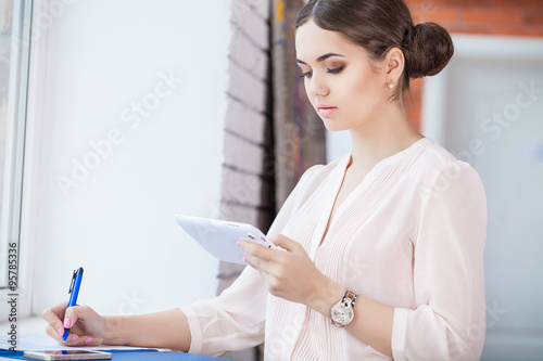 20s, active, adult, attractive, beautiful, business, businesswoman, caucasian, cheerful, closeup, computer, confident, corporate, cute, electronic, executive, face, female, happiness, happy, human, indoor, lady, lifestyle, looking, manager, modern, office, 1, pad, pda, people, person, portrait, pretty, professional, salesgirl, secretary, smiling, standing, successful, tablet, technology, touch, touch screen, woman, men at work, working, young