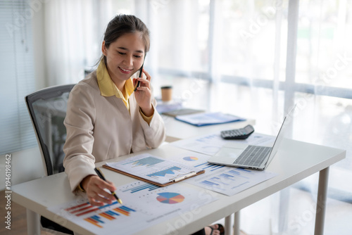 businesswoman, office, financial, analysis, phone, call, remote, work, desk, accountant, finance, communication, graph, business, chart, datum, banking, woman, laptop, professional, startup, enterprise, strategy, marketing, success, corporate, management, entrepreneur, smiling, cheerful, happy, working, technology, planning, document, paperwork, report, statistic, growth, development, brainstorming, productivity, smart, modern, female, career, workplace, cyberspace, computer