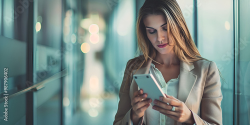 businesswoman, smartphone, office, hallway, professional, working, phone, technology, modern, female, corporate, workplace, business attire, communication, business, mobile phone, professional woman, young adult, standing, indoor, serious, leadership, sharpened, confident, digital, mobile device, office work, multitask, missy, career