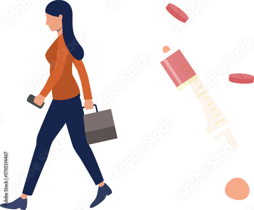 medicine, pill, drug, tablet, capsule, pill, drug, working woman, professional, medication, walking, tied-up, career woman, multitask, urban life, female, lifestyle, city, pharmacy, wellness, commute, office, determination, efficiency, medicine, health, health care, medicals