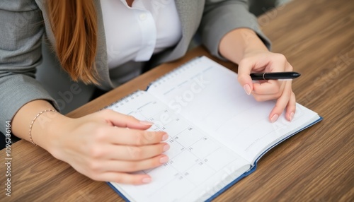 Businesswoman Writing Schedule In Calendar Diary