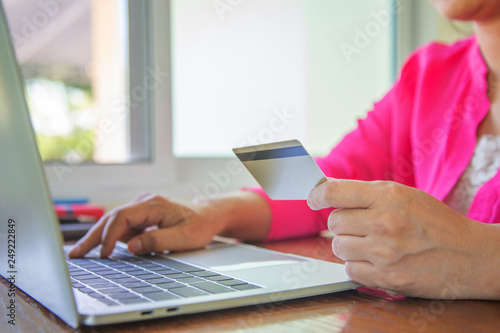 Businesswomen holding cedit card for shopping online.concept