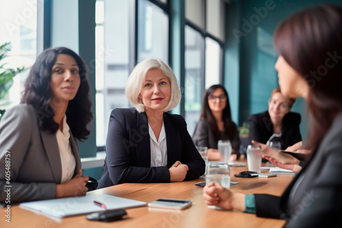 businesswoman, teamwork, colleague, office, people, woman, meeting, working, company, discussion, employee, group, business, desk, entrepreneur, talking, diversity, businessperson, brainstorming, female, indoor, investment, manager, business meeting, success, strategy, presentation, planning, businessperson, analysis, team, generative, ai