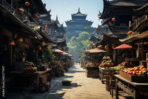 Bustling street market in a foreign city, Generative AI