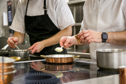 hand, pot, kitchen, cook, chef, eatery, professional, dish, food, cooking, job, indoor, culinary, cookery, service, caucasian, uniform, person, cooker, people, pan, work, male, commercial, adult, epicure, occupation, teamwork, making, industry, man, tasty, team, standing, teamwork, chief, modern, profession, preparation, stove, protective, hot, equipment, meal, preparing