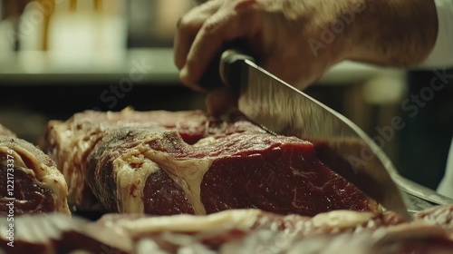 butcher, beef, carving, kitchen, eatery, meat, steak, knife, prime, food, cooking, chef, food preparation, cut, raw, ingredient, preparation, delicious, epicure, butcher shop, table, hand, work, profession, culinary, slice, chop, industry, commercial, quality, texture, marbling, red, grocery, market, agriculture, farm, protein, healthy, diet, receipe
