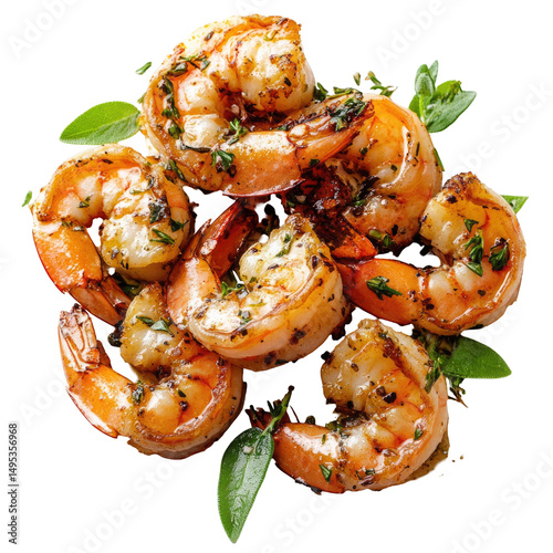 Butter Garlic Prawns With Herbs And Glossy isolated on a transparent background