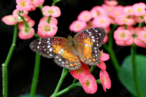 Butterfly brown peacock or scarlet peacock Female Anartia amathea feeding on Flower