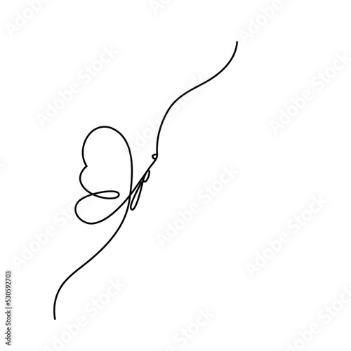 Butterfly one continuous line drawing element isolated on white background for logo or decorative element. one line art