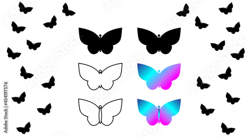 Butterfly silhouette set, outline icons, gradient, summer theme. Illustration.