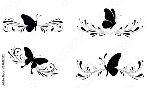 butterfly, swirl, decorative, element, vintage, ornate, design, retro, flourish, spring, floral, classic, scroll, antique, template, pattern, calligraphy, baroque, victorian, banner, emblem, engraving, monogram, heraldic, crest, art, luxury, decoration, style, graphic, set, collection, scrollwork, invitation