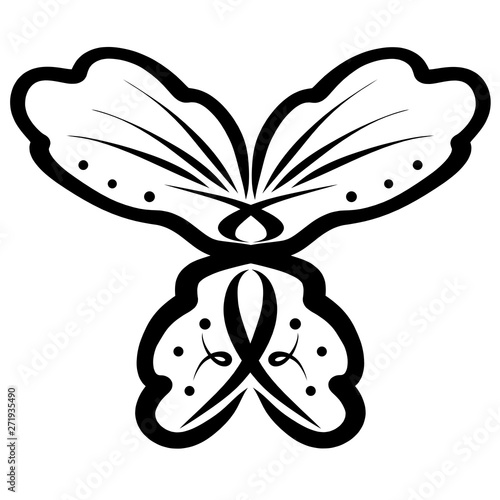 butterfly with a symbolic pattern, black outline