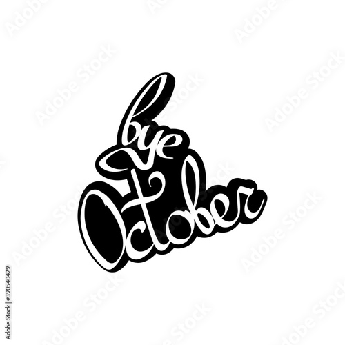 Bye October, isolated calligraphy phrase, words design template, vector illustration