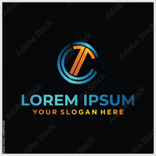 C T CT Logo Letter Design Vector colorful glossy color. Design Template
