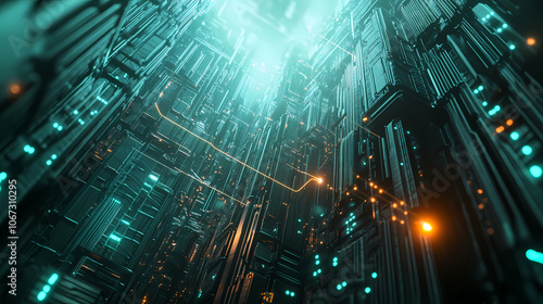 concept, high speed, cyberspace, connection, glowing, cable, web, sending, digital, datum, spectacular, futuristic, city landscape, skyscraper, art, three-dimensional, illustration
