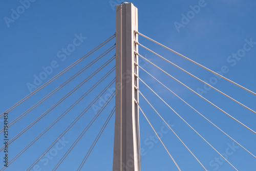bridge, suspension, sky, river, architecture, cable, construction, modern, road, blue, rope, rope, structure, water, white, steel, building, landscape, bridge, city, crossing, travel, sea, hanging, concrete, metal, design, bright, nobody, outdoors, view, suspended, cable, clear, sunlight, tower, transport, transportation, engineering, urban, abstract, landmark, support