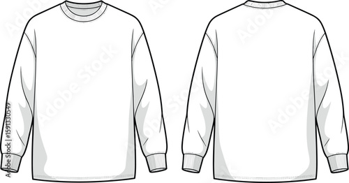 CAD drawing flat vector illustration of blank long sleeve sweatshirt front and back view, fashion technical sketch template