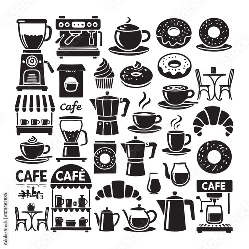 cafes, cafes, icon, black-and-white, vector, hot drink, tea, cup, drink, illustration, minimal, graphic, beverage, espresso, donut, bakery, casual attire, breakfast, barista, hot drink, simple, food, shadow, modern, warm, cafes, cosy, morning, caffeine, snack, elegant, dining, detailed, social, relaxation, stylish