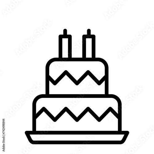 cake, dessert, celebration, pastry, sweet, line, outline, icon, design
