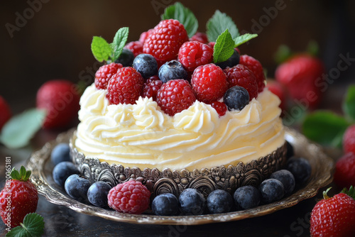 cake, berry, cream, dessert, sweet, delicious, treat, indulgent, confection, bakery, food, celebration, party, birthday, homemade, pastry, whipped, frosting, delightful, colourful, tasty, fresh, fruity, decoration, garnish, sugary, creamy, decadent, festive, special, occasion, epicure, culinary, baking, strawberry, raspberry, blueberry, blackberry, red, white, pink