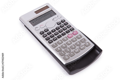white background, calculating machine, mathematic, isolated, business, office, technology, education, school, accounting, finance, number, tax, financial, silver, mathematic, buttons, key, number, buttons, problem, screen, mathematic