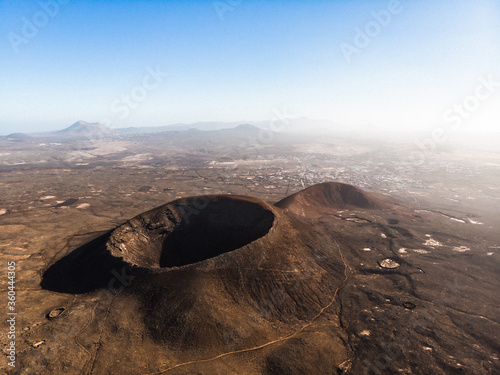 volcano, crater, volcanic, aerial, drone, fuerteventura, landmark, spain, vacation