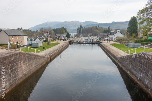 Caledonian Canal in Fort Augustus at Loch Ness Highlands Scotland Great Britain
