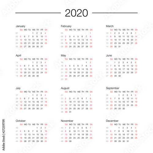 Calendar 2020 year template day planner in this minimalist
