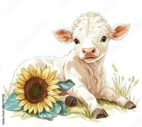 calf, sunflower, animal, nature, sunlight, resting, agriculture, farm, farm animal, cute, young, plant, pet, rural, serene, peaceful, grass, animal welfare, environment, flora, fauna, portrait, wildlife, natural, sunshine, domestic, growth, soft, landscape, meadow, companionship, innocence, beautiful, countryside, earth, playful, youth, mammal, character, organic, joy, tenderness, calmness, habitat, blooming, cheerful