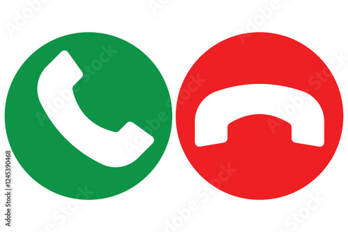 Call icon in phone. Phone call icon accept and decline. Green, red and black icons for end or accept of mobile call.