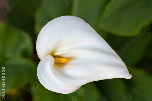 Calla Lily (Zantedeschia aethiopica) white flower top view