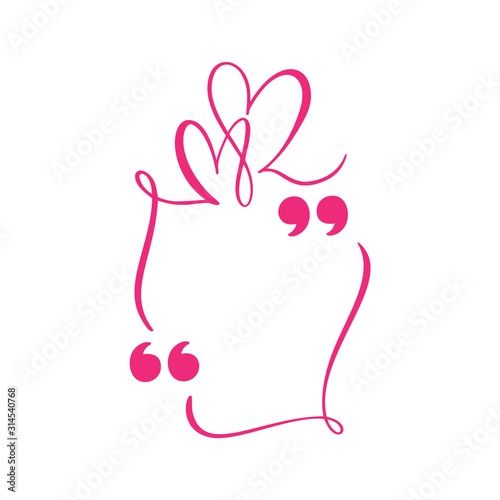 Calligraphic flourish quote box frame. vector quote box with heart for love valentine card. Blank template design quotation bubble quotes symbols. Creative banner illustration