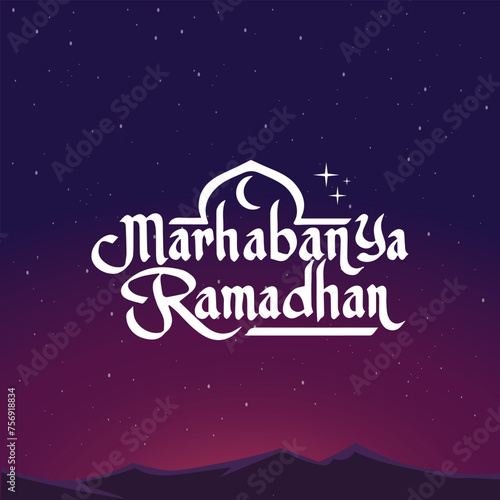 Calligraphy style writing design for posters or logos welcoming the month of Ramadan