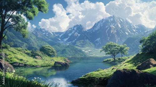 Calm and Serene Landscape, anime style