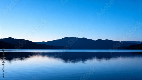 lake, mountain, water, sky, blue, calm, still, nature, landscape, horizon, serene, evening, silhouette