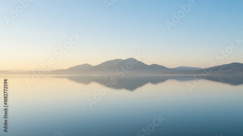 Calm Lake Reflection with Distant Mountains at Dawn