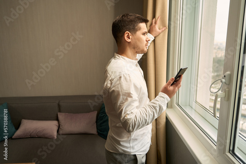 phone, comfortable, window, hotel room, comfortably, wall, young, business trip, sneaker, travel, resting, adventure, lifestyle, leisure, pant, couch, lighting, white, hotel, relaxation, beautiful, soft, casual clothes, shirt, room, clean, people, cheerful, service, curtain, person, career, adult, neat, vacation, talking, joy, guy, yourself, male, dream, man, happy, modern, happiness, indoor, sleepy, concept